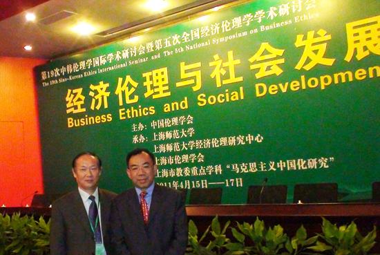 由中国伦理学会主办,上海师范大学、上海市伦理学会、上海师范大学经济伦理研究中心承办的“经济伦理与社会发展——第19次中•韩伦理学学术研讨会暨第五次全国经济伦理学学术研讨会”日前在上海教育国际交流中心举行。出席会议的有韩国国民伦理学会会长金荣泰等韩方学者32人,中国伦理学会会长、清华大学哲学系主任万俊人等中方学者90余人。与会学者围绕“公平正义与社会发展”、“企业伦理与社会发展”、“消费伦理与生态文明”和“东亚文化与社会发展”等经济伦理学前沿问题共同进行了深入探讨。