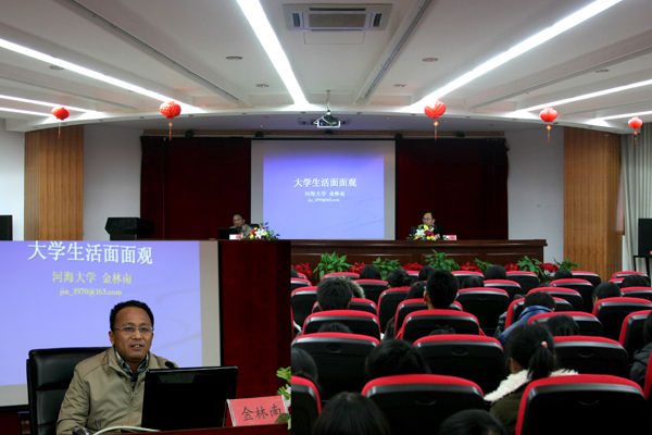 11月30日下午,河海大学马克思主义学院教授、博士生导师金林南教授应邀在明德楼报告厅作了题为《大学生活面面观》的讲座。思政教研部老师和2011级的学生共同聆听了讲座。