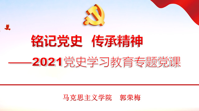 6月16日中午,马克思主义学院全体党员开展党员固定党日活动。本次活动以听取支部书记郭荣梅专题党课活动形式开展。党课《党史 传承精神》紧紧围绕中国共产党建立的背景和经过、中国共产党领导革命夺取政权的浴血奋战史、中国共产党执掌政权的历史三个部分回顾了建党100周年以来党走过的艰辛历程和伟大成就。